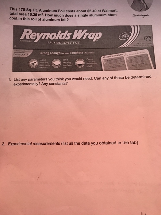 Solved A Roll Of 175 Sq Ft 16 25 M2 Aluminum Foil Cos Chegg Com from media.cheggcdn.com Buy more aluminum foil in bulk. Aluminum foil is a pretty cool kitchen tool. Aluminum foil is recyclable if it's free of food residue. 8021 aluminium foil cost is higher than 8011. A little aluminum foil goes a long way. It has to do with the density, or the mass per volume, of the ship (and its cargo) compared to the density of water. Use the link below to the related question, how is. In the breakdown of expenses, job supplies or materials needed for the job include solvents, masking tape.